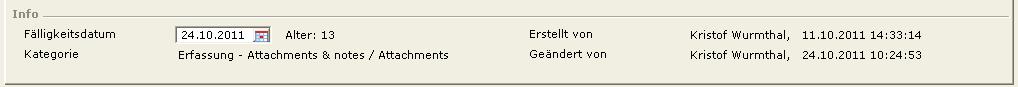 Hier wird der vollständige Name des Mitarbeiters angezeigt, der das Dokument angelegt hat, und zusätzlich Datum und Zeit der Anlage.