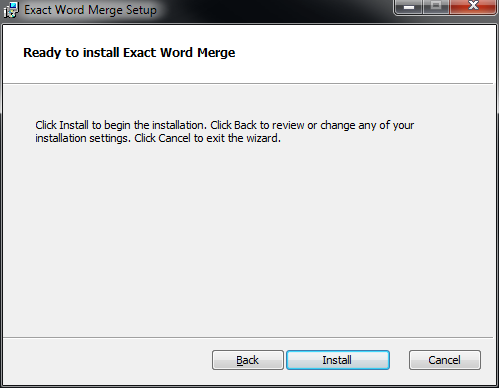 - Voer ExactWordMerge.msi uit op de server. Het volgende scherm wordt getoond: