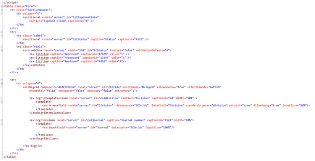 The following sample scripts explain the loading of the user control. For an example of an expense claim configuration user control, if the request type is not using lines, the Configuration page will not be displayed on the setup page.