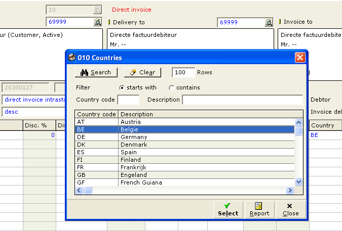 Invoice], create a new direct invoice, in the lines notice a Country field
