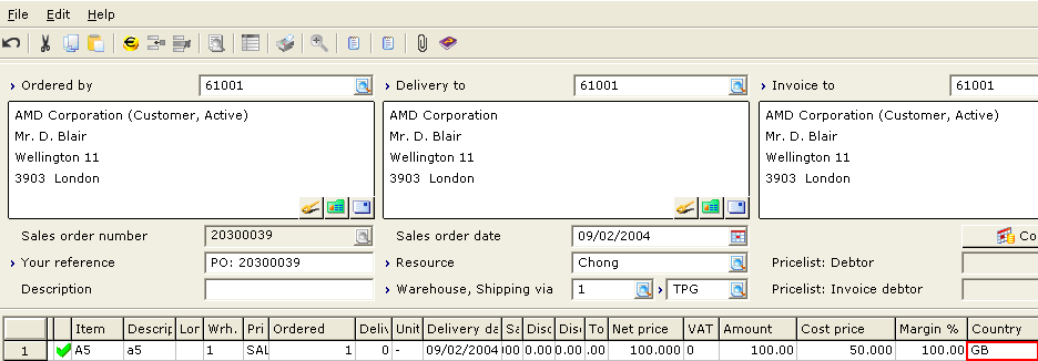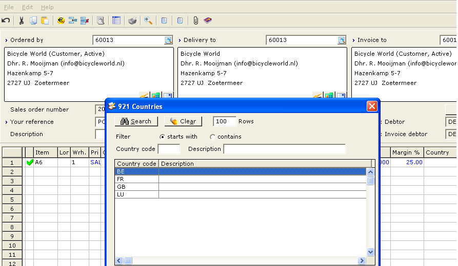 Entries > Sales orders], create a new sale order, there is a Country field exist