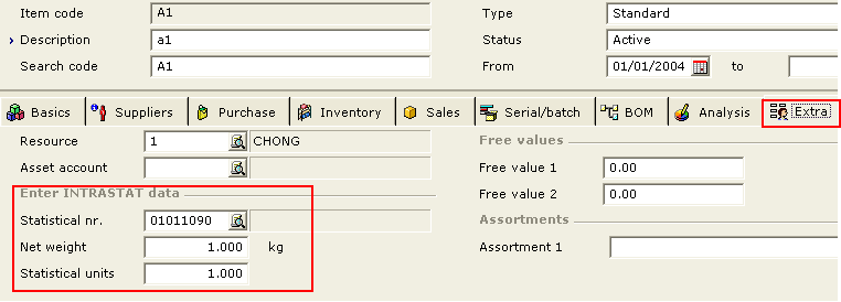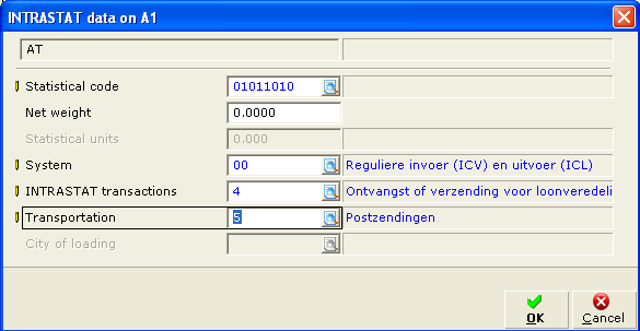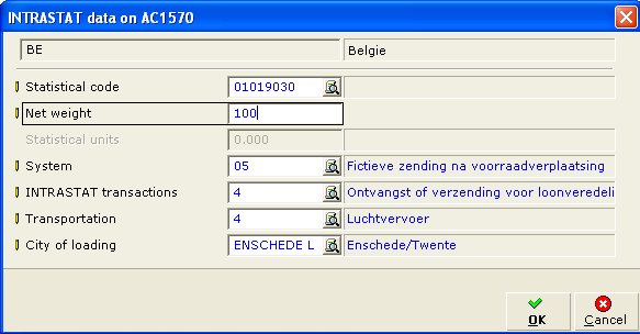 field and <Tab>, this INTRASTAT window will be displayed. The statistical code