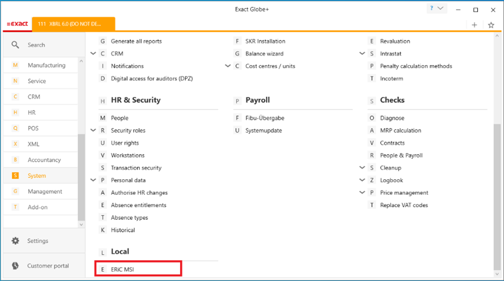 Note: The menu path is only available in Exact Globe+.