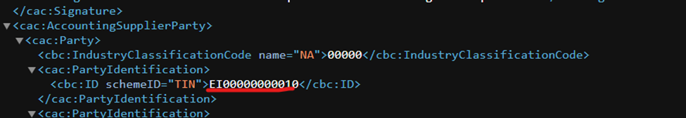 The following is a sample XML whereby the invoice debtor country is Singapore.