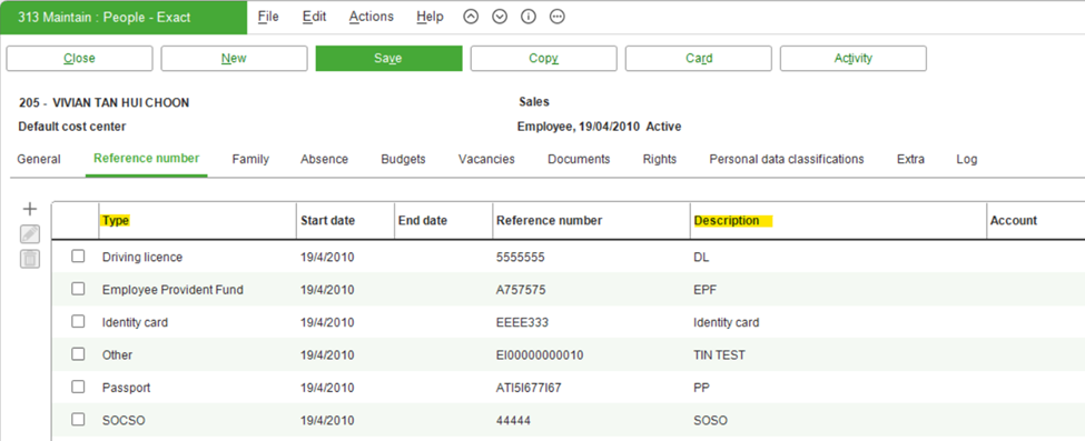 Absence type and Description is exposed