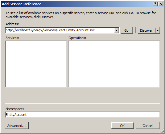 Note: It is not recommended to perform direct referencing to the following: Exact.Entity, Exact.Entity.Data, Exact.Entity.Service, and Exact.Utilities.EG. This is because they have been replaced with Exact.Services.Client. For more information, see How-to: Consuming entity services using entity service client proxy.