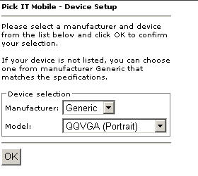 The 'model' list is generated from a pre-defined list in the file Web.config. This file is also stored in the Pick-IT main IIS folder.You can add your own specific resolutions, or finetuning of screen heigth for example, by editing Web.config with notepad.Search for the text 'MX7' in this file, and you will find the list of 'models':