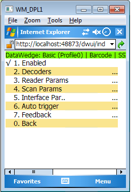 Configuration on the device: on the main screen (Today screen), click on the Datawedge symbol right below in the task bar.