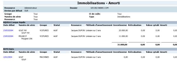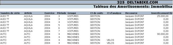 • Tableau des amortissements : liste de tous les amortissements planifiés et déjà traités d'une immobilisation par date.