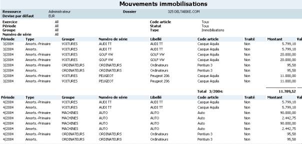 • Mouvements : liste des mouvements relatifs aux immobilisations.