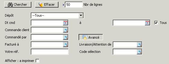 Si vous encodez un code de sélection ici, seules les commandes clients avec ce code de sélection seront affichées.
