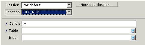 Sélectionnez ici la fonction que vous souhaitez utiliser. Pour sélectionner la clé suivante (à partir d'une clé précédente) d'une table quelconque, vous devez opter pour "FILE_NEXT".