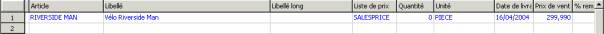 les données de base de l'article sélectionné (dans la ligne de facture) et