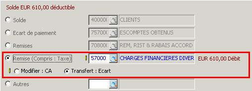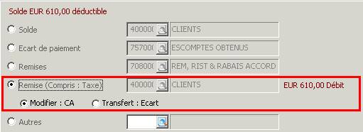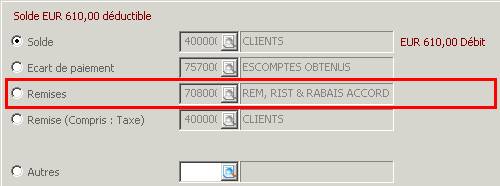 pas modifiée, la remise est imputée comme coűt/revenu sur le compte défini via