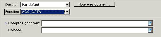 La fonction [ACC_DATA (acc_nr;co;field)] vous permet d'insérer les données de base d'un compte dans la feuille de calcul. Si vous ne sélectionnez aucun champ, c'est le libellé qui est affiché. Si vous voulez voir certaines données d'une suite de comptes, vous pouvez utiliser cette fonction en combinaison avec les fonctions "FILE_NEXT" et "FILE_FIRST".