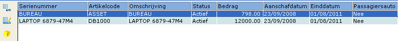 Bovenin het onderhoud van de medewerker kunt u op de knop  'Activa' (boven in het scherm) klikken. Dit document beschrijft het scherm dat verschijnt als u op deze knop klikt.