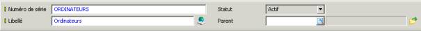 A hauteur de ce champ, vous attribuez un numéro de série ŕ l'immobilisation. Le numéro de série est le code unique d'une immobilisation. Il comporte 20 caractčres maximum.