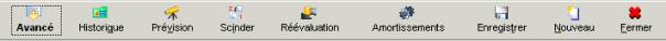 Ce bouton vous permet de créer directement une nouvelle immobilisation. Si vous avez édité une immobilisation ou que vous en avez créé une auparavant, le programme vous demande d'abord si vous voulez sauvegarder les modifications.
