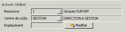 Vous trouvez ici la ressource, le dépôt et l'emplacement auxquels est liée la derničre transaction pour cette immobilisation.
