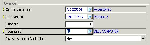 Vous pouvez entrer ici le code article correspondant au code article de la nouvelle immobilisation. Lorsque vous lierez le mouvement comptable ŕ cette immobilisation, votre choix sera limité aux mouvements avec ce code article. Vous diminuez ainsi le risque d'erreur.
