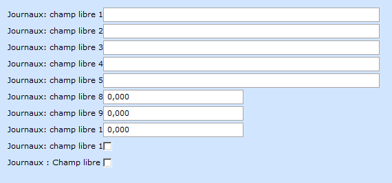 Vous pouvez enregistrer ici des informations complémentaires concernant les journaux. Vous pouvez modifier le nom de ces champs via [Système, Général, Champs libres].