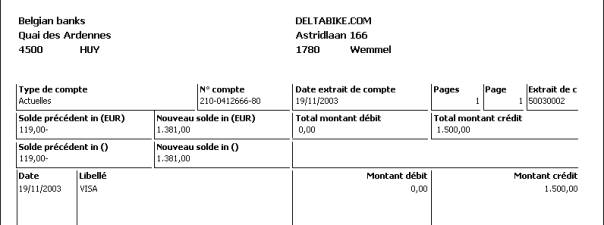 Les extraits de compte sont imprimés suivant le layout initial de votre banque.
