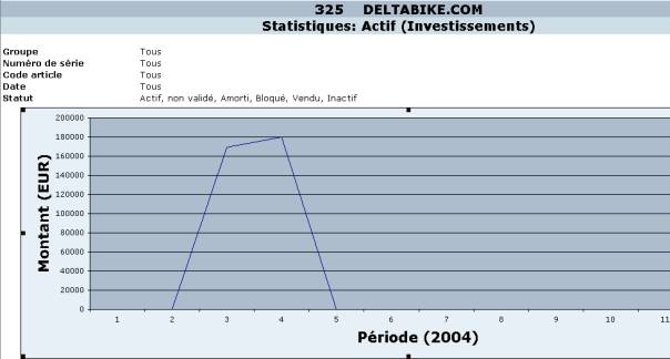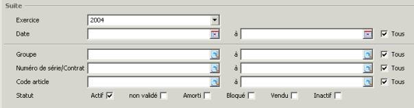 A chaque numéro de série (immobilisation) est lié un code article. Ici, vous pouvez sélectionner une suite de codes articles. Dans ce cas, le graphique ne reprend que les immobilisations liées à ces codes articles.