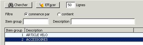 [Système, Logistique, Groupes d'articles]. Ces groupes sont liés aux articles.