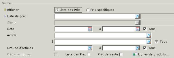 Si vous activez ce champ, le programme affiche toutes les listes de prix