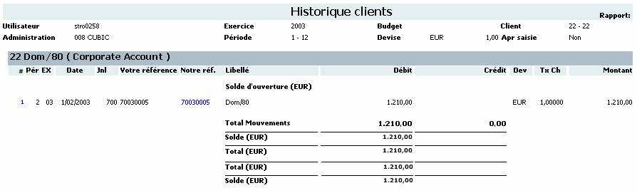 Consultation en ligne, Historique clients/fournisseurs], vous pouvez d'abord