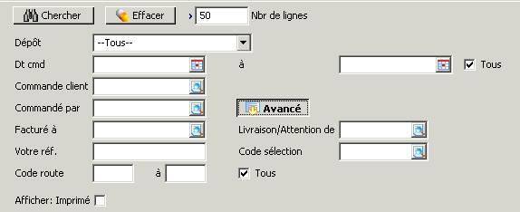 ici, seules les commandes clients avec ce code de sélection seront affichées.