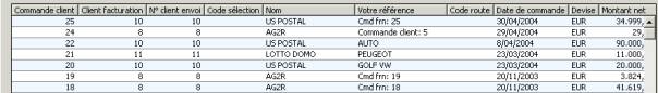 client ici, seules les commandes clients pour lesquelles le client sélectionné