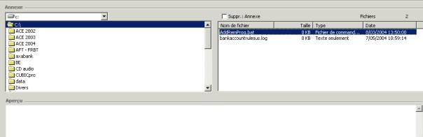 'Aperçu'. Attention : si vous activez l'option 'Supprimer : annexe',