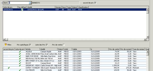 spécifique pour ce client, un ü dans la colonne 'Liste de prix' indique que le prix