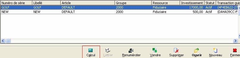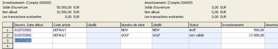 Dans cet écran, vous voyez les immobilisations telles qu'elles ont été créées