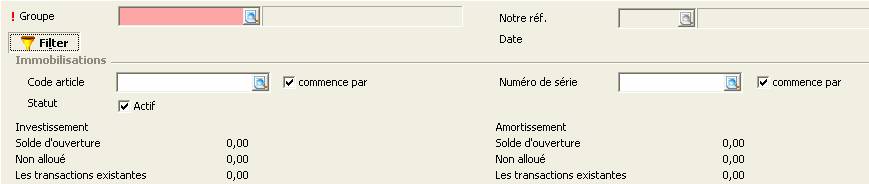 groupe d'immobilisations duquel vous voulez sélectionner une immobilisations
