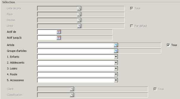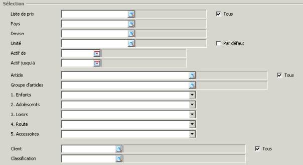 sélectionnant une classification. Dans le cas des prix de vente, ce champ n'est