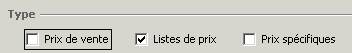 de prix, désactivez l'option 'Prix de vente' et activez l'option 'Listes de