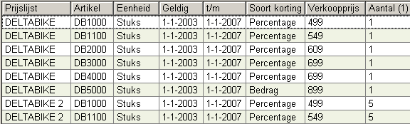 remise d'une liste de prix ou d'un accord de prix est basée