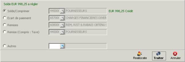 sorte qu'il n'y a plus rien d'impayé et l'écart est imputé comme remise (pour