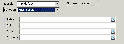 Sélectionnez ici la fonction que vous souhaitez utiliser. Pour sélectionner les champs des fichiers du programme, vous devez opter pour "FILE_FIELD".