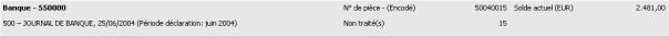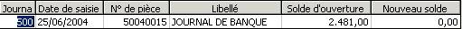 Le programme affiche ici le numéro du journal de banque sélectionné.