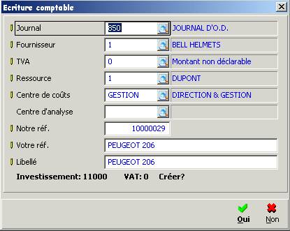 écriture d'achat au moment oů vous sauvegardez les données.