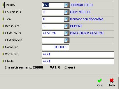 une écriture d'achat. Dans la fiche de l'immobilisation, vous encodez le