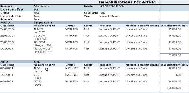 article, un rapport de vos immobilisations. Ce rapport vous permet de voir combien d'immobilisations il y a par