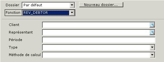 Sélectionnez ici la fonction que vous souhaitez utiliser. Pour récupérer les statistiques de vente par client et/ou par représentant, vous devez opter pour "REV_DEBTOR".