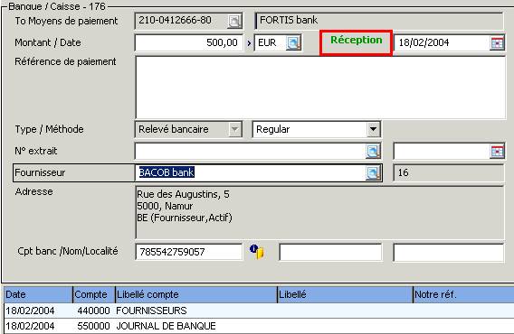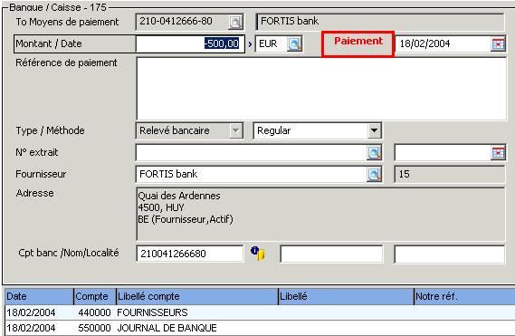 de paiements et de versements via [Banque, Encodage des écritures, Flux de