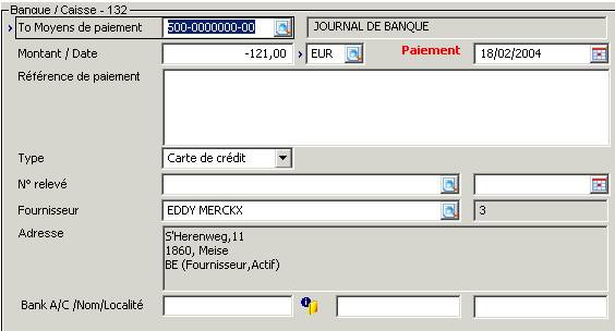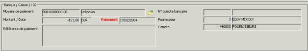 Vous devez indiquer ici le moyen de paiement sur lequel le versement ou à partir duquel le paiement est effectué. Vous ne pouvez sélectionner que les moyens de paiement créés pour votre entreprise. L'extrait de compte sera alors enregistré sur ce moyen de paiement. Dans le champ en regard, est affiché le libellé que vous avez donné au moyen de paiement.