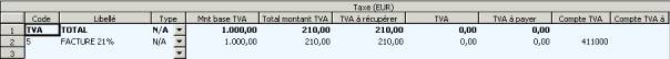 Le calcul du montant TVA est basé sur le code TVA sélectionné à
