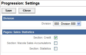 - Section: Macola Sales Accumulators check box - shows or hides the sales accumulators section.